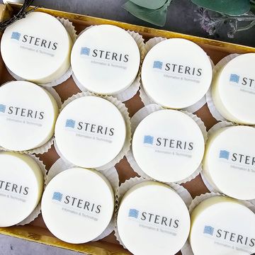 Branded products enable your company to distinguish itself and leave a lasting impact on your clients. Our buttery vanilla sugar cookies are expertly hand-iced with delectable vanilla royal icing, and your logo is applied directly onto the cookie using FDA-approved edible ink. Each cookie is heat sealed, ensuring a perfect and memorable takeaway.